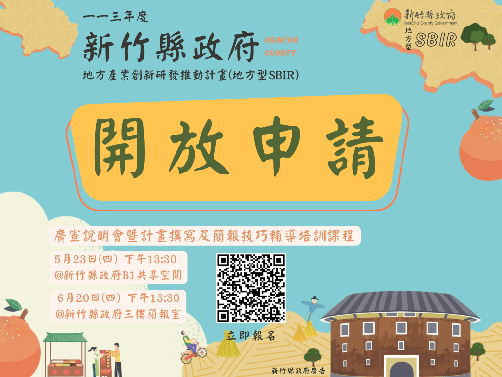 112年度新竹縣地方型SBIR【廣宣說明會】開放報名囉!場次及名額有限~歡迎踴躍參加!