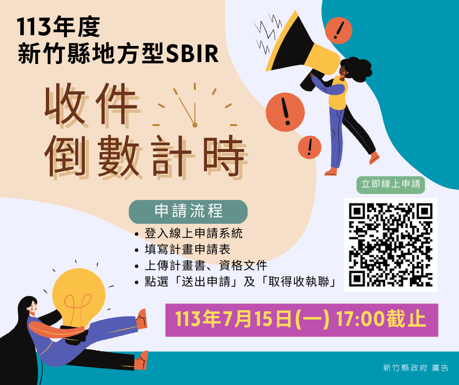 113年度新竹縣地方型SBIR收件時間提醒!