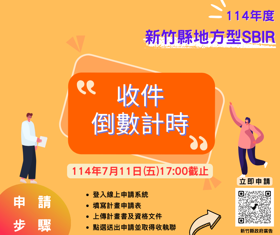 114年度新竹縣地方型SBIR收件時間提醒!