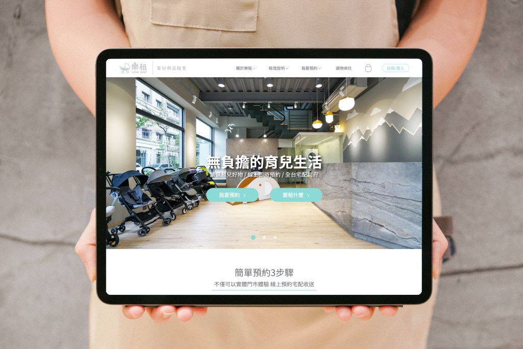 【硬體】:線上育兒用品租借網站,可即性並彈性的在線上完成租借預約,輕鬆依照分類篩選,選擇您想要的租借商品及檔期: