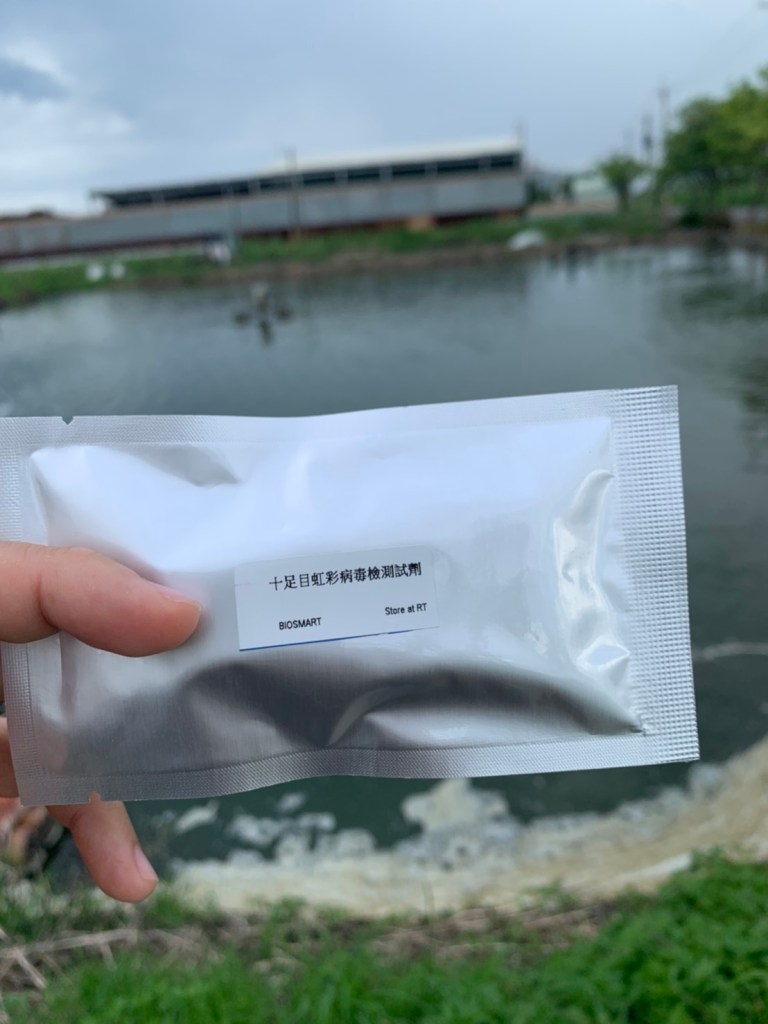 目前台灣蝦類的產值年超過40億元,算是重要的經濟作物。如何保護台灣養蝦產業,檢測方法與技術是非常重要且是防範疫病的第一道防線。由於十足目虹彩病毒是一種新型的DNA雙鏈病毒,其防疫監控措施皆未完善。因此開發快速檢測十足目虹彩病毒試劑對於防疫監控非常重要。為協助養殖用戶及第一線防疫人員能於第一時間內正確診斷疾病。