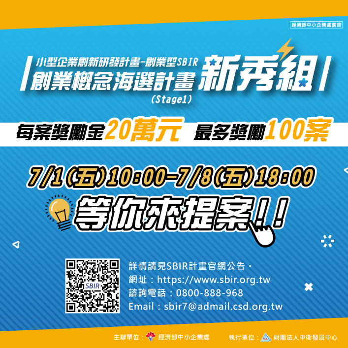 【SBIR-創業概念海選計畫_新秀組】等你來提案📝
