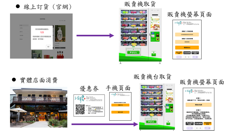3、實體店面、智慧販賣機及電商官網虛實整合,導流消費者至實體店面來體驗或深度旅遊。