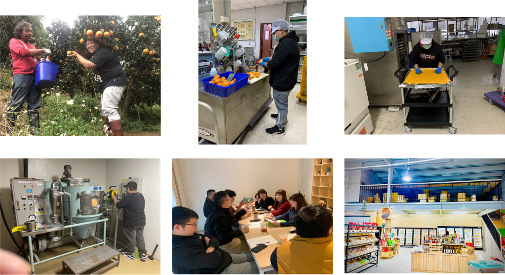 2、將不適食用的有機柑橘副產物/ 格外品轉化為可多元化運用在植物基食品、烘焙產品等新穎食品配料,可有效提高有機柑橘類作物之經濟產值。