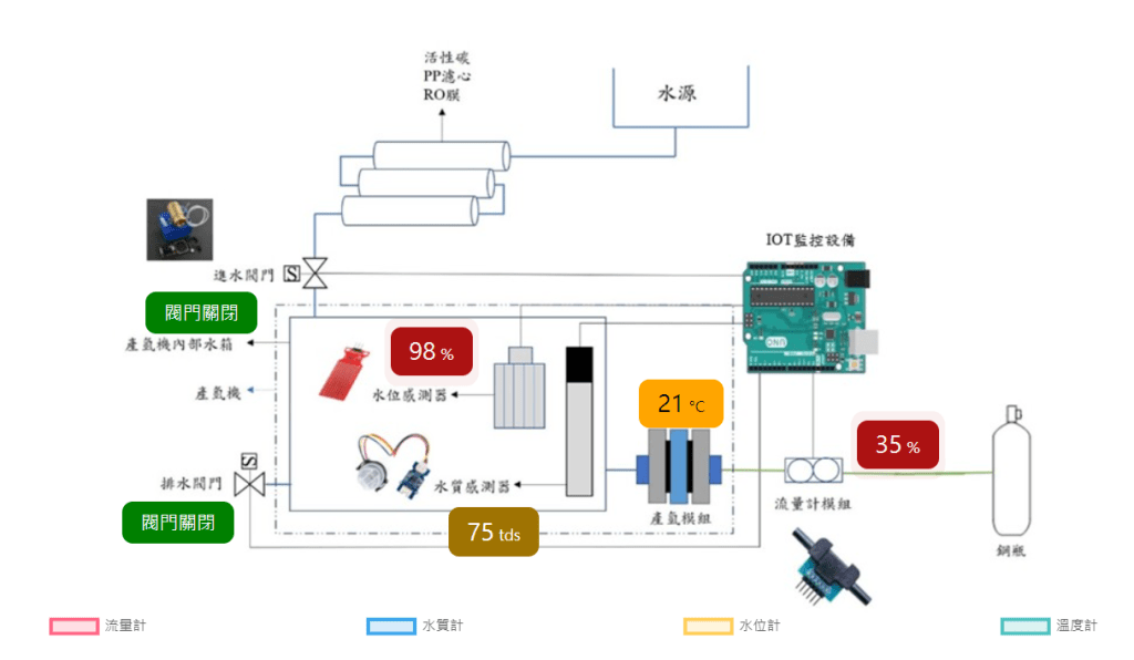 3、開發雲端IoT 產氫監控,透過雲端24H 隨時取得產氫數據, 可有效掌控設備、產氫製程狀態、濾心更
