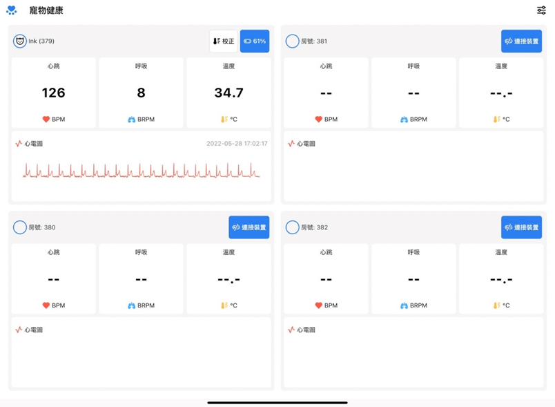 奇翼醫電開發演算法及對應裝置,建立寵物呼吸率計算的標準。雖收案過程剛開始時太過樂觀,導致大型犬收案數量較少。但經過計畫參與人員的