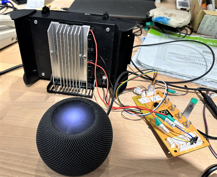 目前市家用感知設備分散,無通訊模組,如果家用感知設備欲導入物聯網系統,必須使用同套辨識平台,因此汰換昂貴,因此整合Apple ios 系統,由雲端管理機制,具有較佳的修護與防護能力,將物聯家電傳輸訊號至AI音箱進行自動化控制可套用各類型家電線路,快速傳輸指令。因不綁定家電品牌,可降低佈建成本,體驗智慧生活。