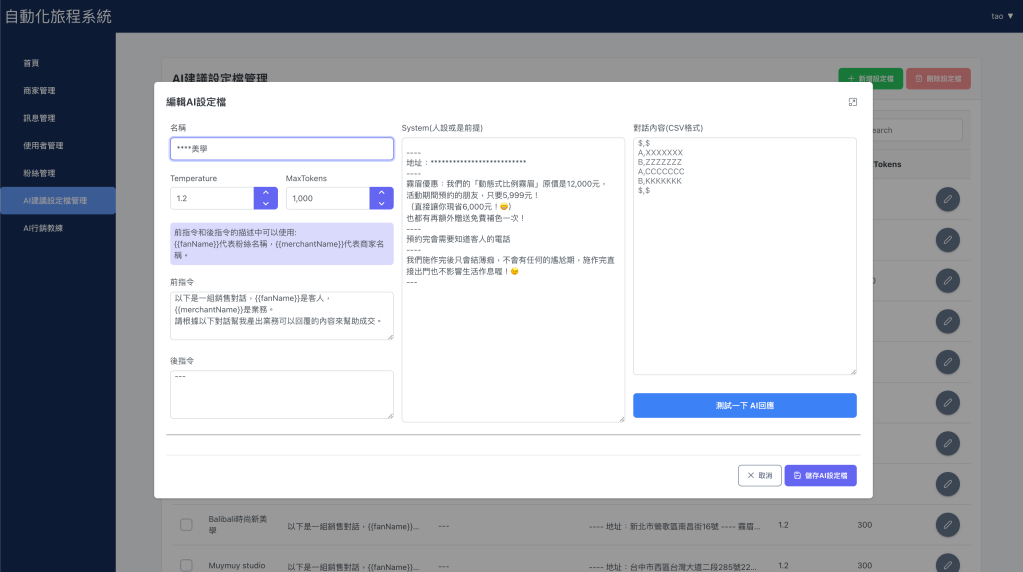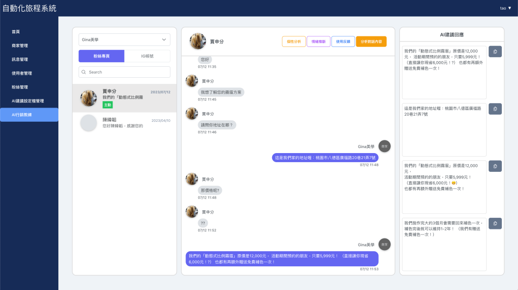2、透過AI 系統, 成功實現消費者性格分析,並能夠根據該分析提供個性化對話建議, 為AI 學習與模型