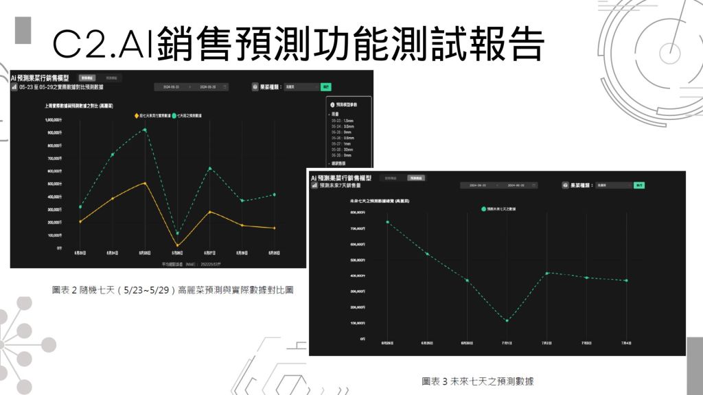 在執行本計畫的過程中,不僅更加深了對市場需求的理解,並成功研發AI銷售預測系統。在團隊共同努力下,計畫達成了預期目標,並取得顯著成效,這讓我們對未來的技術創新充滿信心,也期待實質幫助生鮮蔬果與南北貨傳統批發業者帶來經營上的效益。
