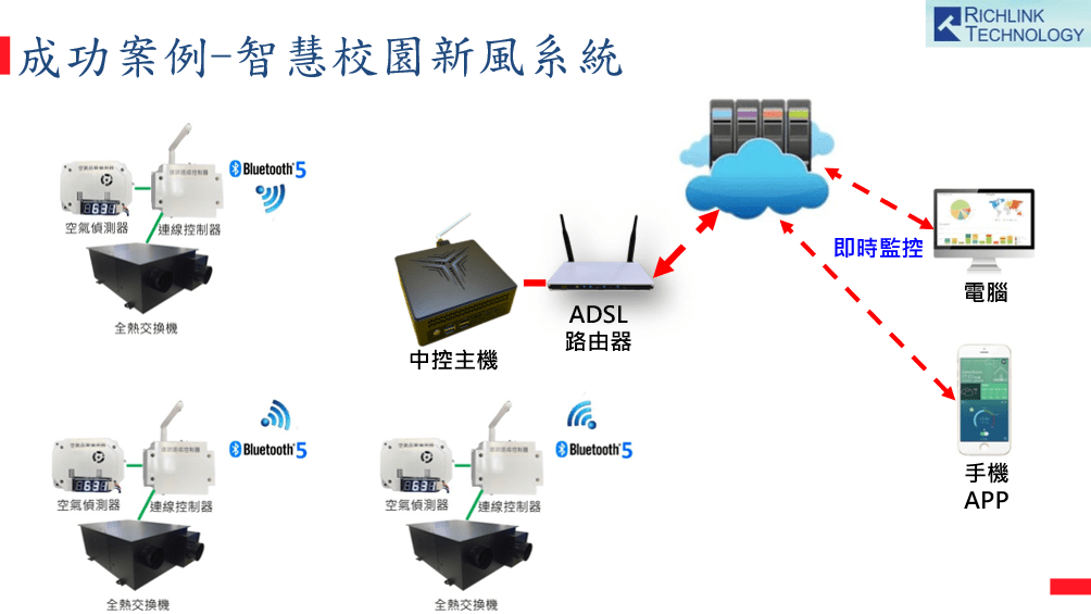 3.社區多元的整合應用設備-運用藍牙5.0 mesh技術,將RS-485無線轉換器導入,發展智慧社區數據中心服務,讓社區管理可以有大數據收集及分析,達到社區設備即時監控與管理,實現節能減碳為目標。