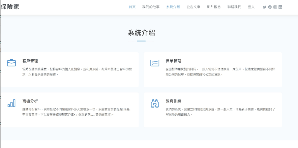 我們成功地提升客戶對保險產品的理解和信任,使他們能夠更有效地管理和優化自己的保險組合。與此同時,系統也為我們的業務員提供了寶貴的工具和資源,幫助他們在競爭激烈的市場中脫穎而出,並建立更深入的客戶關係。