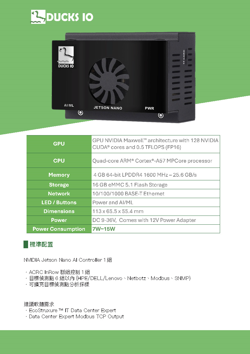 台灣企業與政府機關對於電力能源需求越來越迫切,設備散熱需要的空調製冷對電力能源需求也相對增加,在客戶端資料中心建置與管理過程中,對於電力與能源的使用有很大改善空間,主要是不確定設備要多冷只能提供最冷的環境,因此我們在六年前研究開發智能空調控制系統解決空調溫度設置過低問題,但仍無法有效率地去控制空調溫度達到節能效果,過程中也嘗試發展人工智能調控的解決方案,當時沒有很好可以解決Edge AI的開源套件與運算資源成本太高,在Nvidia推出Jetson Nano的低價開發套件與開源TensorFlow’s Keras API裡面的深度學習的套件看到了Edge AI節能解決方案商機。